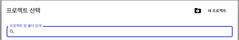 상단에 프로젝트 선택를 눌러줍니다. (만약 다른 프로젝트를 생성한 상태라면 다른 프로젝트 명이 표시되어 있습니다.)