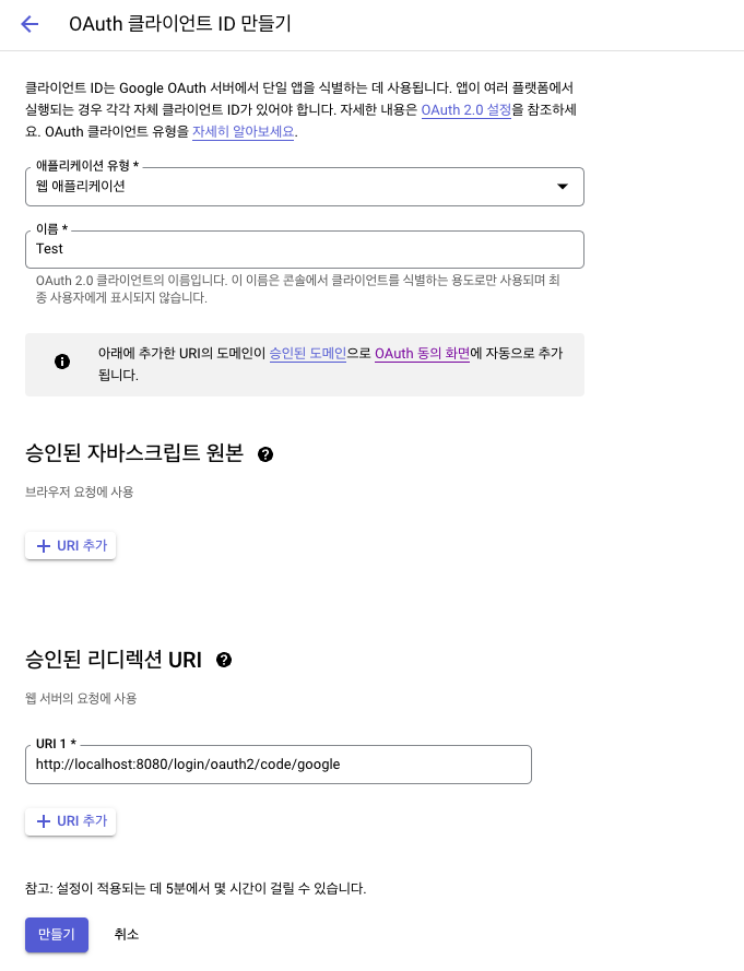 링크(ex: http://localhost:8080)/login/oauth2/code/google
