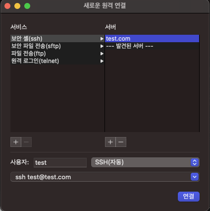 터미널 -> 셀 -> 새로운 원격 연결... (단축키 : ⇧⌘K)