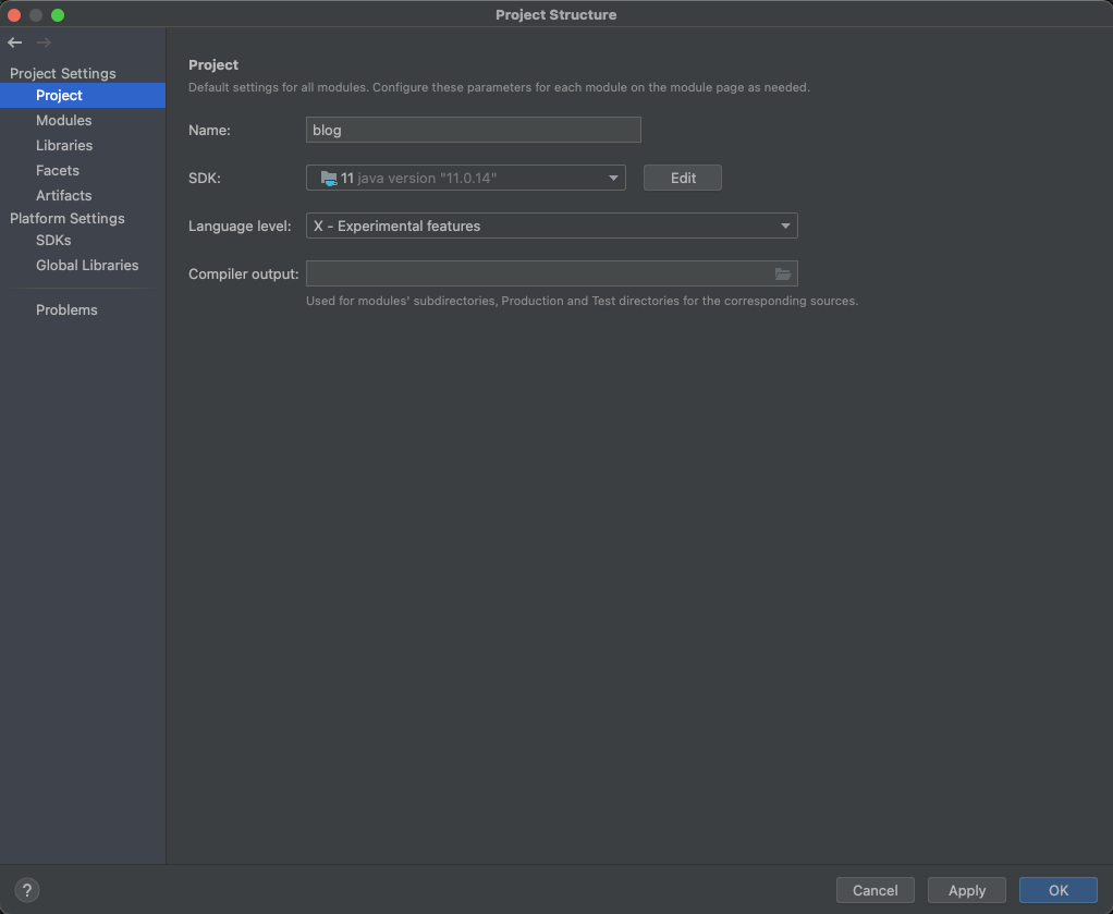 이제 다운로드한 파일 눌러 설치하고 인텔리제이로 돌아오신 뒤 File -> Project Structure (단축키: Command + ;)